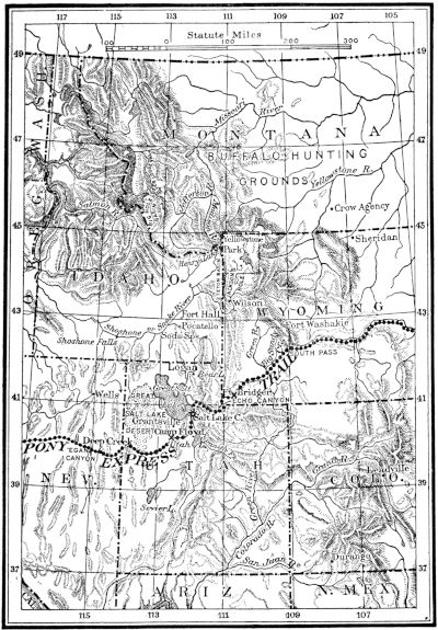 | Wanderings of Washakie’s tribe through the Idaho country on their trip to market their skins and robes | ||