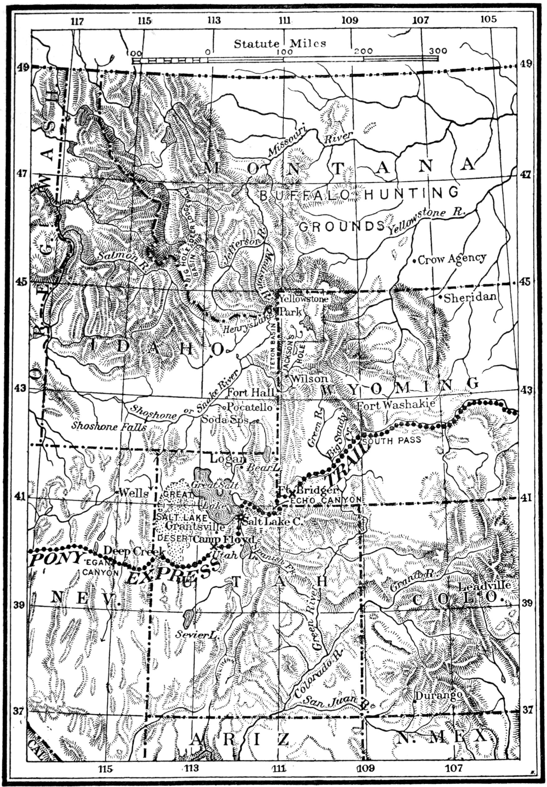 You have no doubt read or heard stories of the great wild West. Perhaps you have even listened to some gray-haired man or woman tell tales of the Indians and the trappers, who roamed over the hills and plains. They may have told you, too, of the daring Pony Express riders who used to go dashing along the wild trails over the prairies and mountains and desert, carrying the mails, and of the Overland men who drove their stages loaded with letters and passengers along the same dangerous roads.