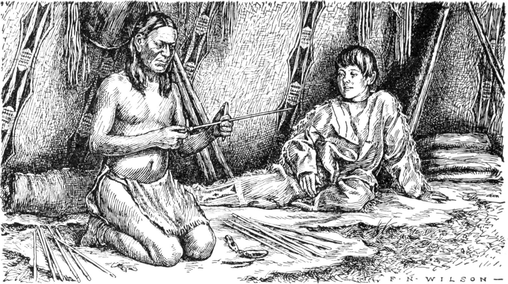 The book tells the story of Kukúsim, an Indian lad who is eagerly awaiting the time when he shall be a warrior. It is full of mythical lore and thrilling adventures, culminating in the mountain vigil, when Kukúsim hears the spirit voices which mark the passing of his childhood. Illustrated with photographs by the author and drawings by F. N. Wilson.