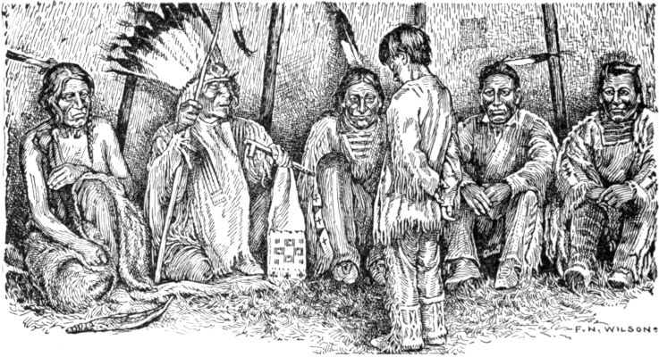 | Indian chiefs confer as to what shall be done with the white boy | ||