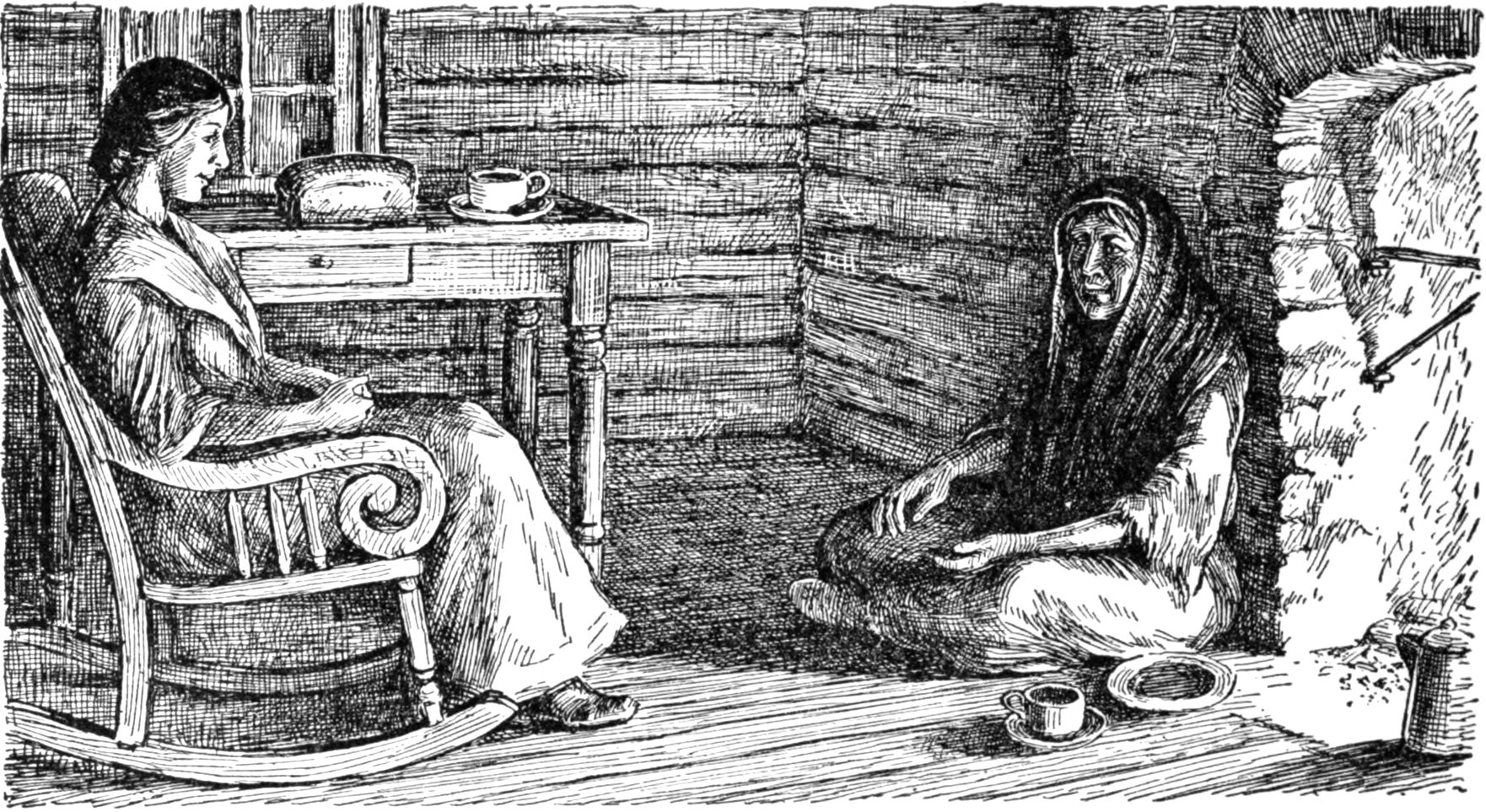 Help must be had at once; but how to get it was a problem. The nearest doctor was over sixty miles away. While the unfortunate travelers were worrying about what to do, Uncle Nick’s wife came to the rescue. She quietly assumed command of affairs, directed the making of a litter, and insisted that the wounded lady be carried to her cabin home a short distance away. Then she turned nurse, dressed the wounds, and attended the sufferer until she was well enough to resume the journey.