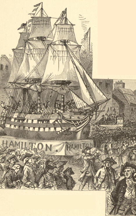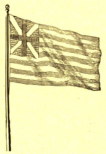 hoisting his colors, aided by the wind and followed by his whole
