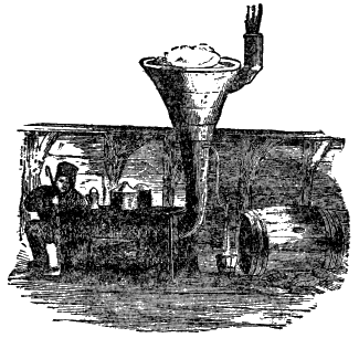 “On the remaining side of the room stand a valued table and three chairs; and with these, like a buhl cabinet or fancy étagère, « 398 » conspicuous in its modest corner, a tub. It is the steeping-tub for curing skins. Its contents require active fermentation to fit them for their office; and, to judge from the odor, the process had been going on successfully."