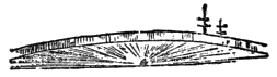 UNE 6. Our bumping continued all I night, without any apparent effect I upon our sticking-plaster. Acting, as this impact does, at the long end of a lever, our stern being immovably fixed, it must be hard upon the rudder post, a beam that is now protruding from the least strengthened part of our brig into a transparent glue of tenacious ice. The twelve-feet saw, suspended from a tripod of spars, is at work, trying to cut a line across the mass to our keel. But for this appendage, we would be now warping through the fissures.