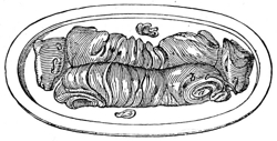 195. Fish is not usually served as an entrée in a common English dinner; it is, however, very admissible, either in fillets, or scallops, in a currie, or in a vol-au-vent. Various circumstances must determine much of the general arrangement of a dinner, the same dishes answering at times for different parts of the service. For example, a fowl may be served as the roast for a small company, and for a large one as an entrée. For a plain family dinner, too, many dishes may be served in a different order to that which is set down.