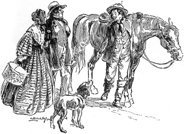 The horse and buggy stood at the gate. The former had a pedigree as long as that of the penniless lass, and Aunt Jane could tell many wonderful tales of Nelly's spirit and speed in the days of her youth. Some remnant of this fire was supposed to smolder yet in the old thoroughbred, but as I looked at the drooping head and half-shut eyes, I saw there was good reason for Aunt Jane's haste, if we were expected to get back from town before nightfall.