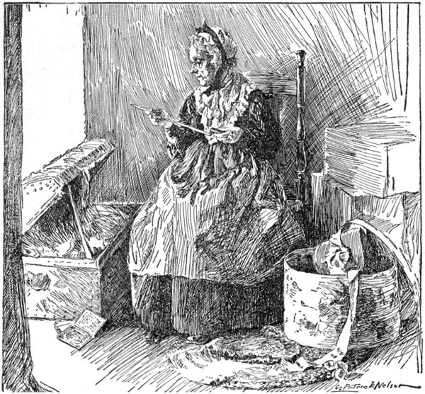 The room was lighted only by the faint glow from the fireplace, but Aunt Jane needed no lamp or candle to guide her through the maze of stitches in the heel of the gray stocking. I sat with folded hands and wondered at the deft fingers that wove the yarn into the web of the stocking, and at the deft brain that, from the thread of old memories, could weave the web of [276]a story in which was caught and held the spirit of an older day.