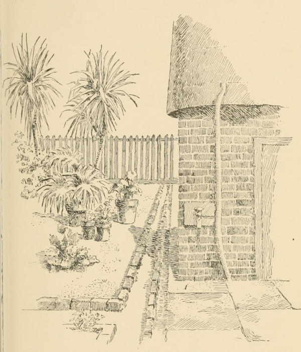 What a delightful reminder of that visit to New Orleans those unfinished sketches are to us now, a quarter of a century after! The one I like best of all hangs in my own room and brings delightfully to mind the day we went way down Chartres Street to the archbishop’s palace. I am not Catholic, and do not remember if it was the beginning or ending of Lent, but a procession of all classes and conditions of the faithful, with all classes and conditions of receptacles, were filing in and out the gateway, getting their annual supply of eau bénite. The lame sacristan who dipped out the holy water from pails into the bottles and mugs became so interested in a sketch my daughter was making, and so busy with a rod driving away inquisitive urchins, that he tired of being constantly interrupted by the eau bénite crowd, so he shut the door of his room. “Trop[313] tard, c’est fini,” he said to some belated, disappointed applicants.
