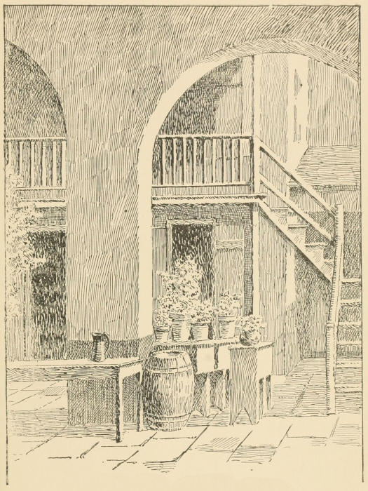 “Yes, indeed, my mamma was a Bienvenue.” The child flew upstairs to tell her mamma, and quickly returned with an invitation for us. Mamma desired to see the sketch, and to meet the lady who had visited her elder sisters. My daughter, used to the cold formality of the New York life, was overwhelmed with the Creole cordiality, delighted to hear that the lamp which had attracted her was a real Spanish antique, and had been hanging in the corridor almost a hundred years; delighted to be shown the superb chandeliers in the parlors, almost as old; and to have a cordial invitation to come another day and make a sketch of the little parterres and of the rambling balconies in the rear.