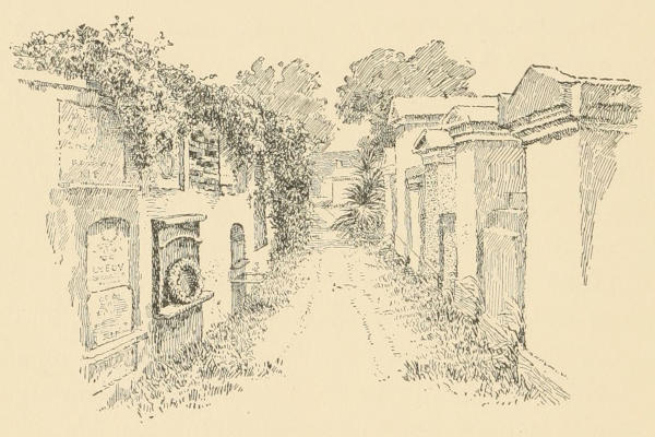 My little daughter and I took many rambles down into the picturesque parts of the old city. I presume in New York it might be called slumming, but every old crawfish ditch and dirty alley was dear to me. Even the old French cemeteries down Basin Street were full of tender memories. When we went home from such tramps, and Elise told, in her graphic way, of the tumbledown appearance of whole streets that mother was so enthusiastic over, our genial host, Phine’s husband, would say, “Why don’t you go up St. Charles Avenue? We fixed that up fine to show to visitors.” But St. Charles Avenue had no sweet memories for me, it had not existed in my day. We saw St. Charles Avenues every day, at home. We had no old French cemeteries, the inscription on almost every tomb calling forth memories of dear, departed Creole friends.