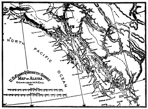 The map accompanying the book is a reduced section of the last general chart of Alaska published by the United States Coast and Geodetic Survey, and is reproduced here by the permission of the compiler, Prof. William H. Dall.