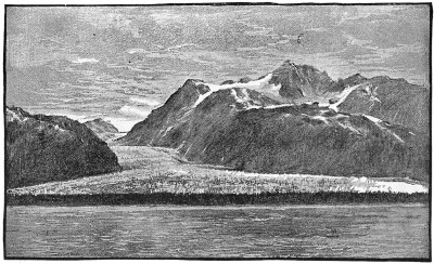 Pleasure-travellers have followed the prospectors’ lead, as it became known that some of the grandest scenery of the continent is to be found along the Alaska coast, in the region of the Alexander or Sitkan Archipelago, and the monthly mail steamer is crowded with tourists during the summer season. It is one of the easiest and most delightful trips to go up the coast by the inside passage and cruise through the archipelago; and in voyaging past the unbroken wilderness of the island shores, the tourist feels quite like an explorer penetrating unknown lands. The mountain range that walls the Pacific coast from the Antarctic to the Arctic gives a bold and broken front to the mainland, and everyone of the eleven hundred islands of the archipelago is but a submerged spur or peak of the great range. Many of the islands are larger than Massachusetts or New Jersey, but none of them have been wholly explored, nor is the survey of their shores completed. The Yosemite walls and cascades are repeated in mile after mile of deep salt-water channels, and from the deck of an ocean steamer one views scenes not paralleled after long rides and climbs in the heart of the Sierras. The gorges and cañons of Colorado are surpassed; mountains that tower above Pike’s Peak rise in steep incline from the still level of the sea; and the shores 4are clothed with forests and undergrowth dense and impassable as the tangle of a Florida swamp. On these summer trips the ship runs into the famous inlets on the mainland shore and anchors before vast glaciers that push their icy fronts down into the sea. The still waters of the inside passage give smooth sailing nearly all of the way; and, living on an ocean steamer for three and four weeks, one only feels the heaving of the Pacific swells while crossing the short stretches of Queen Charlotte Sound and Dixon Entrance.