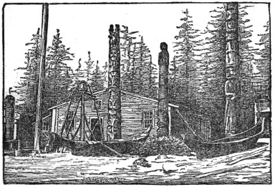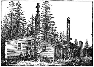 | The Chief’s Residence at Kaigahnee, showing Totem Poles | 274 |