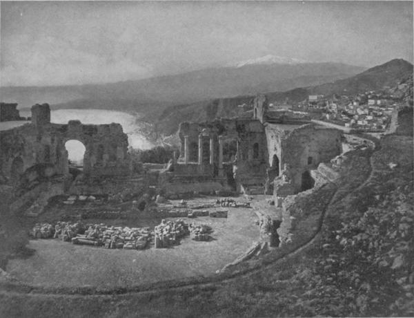 Very sad to each of us it is when time and the sorrows of “this unintelligible world” carve furrows upon our own countenances, but when the visage of the globe shrivels and wrinkles with the lapse of ages then the greatness of the disaster touches the whole race. Sicily, whose history is so full of blood and tears, has been the victim of the greatest natural tragedy that man’s chronicles record because of this line drawn by Time upon our planet’s face—yet it leaves her still so fair, so poignantly lovely, that pilgrims of beauty will—forgetting this slight blemish—still journey to see the sweetest remnant of the world’s youth. Happily 10Messina, the one city injured, was the one city where travellers rarely paused. All the others remain unmarred and are still exactly as they were when this chronicle of their ancient beauty and charm was set down.