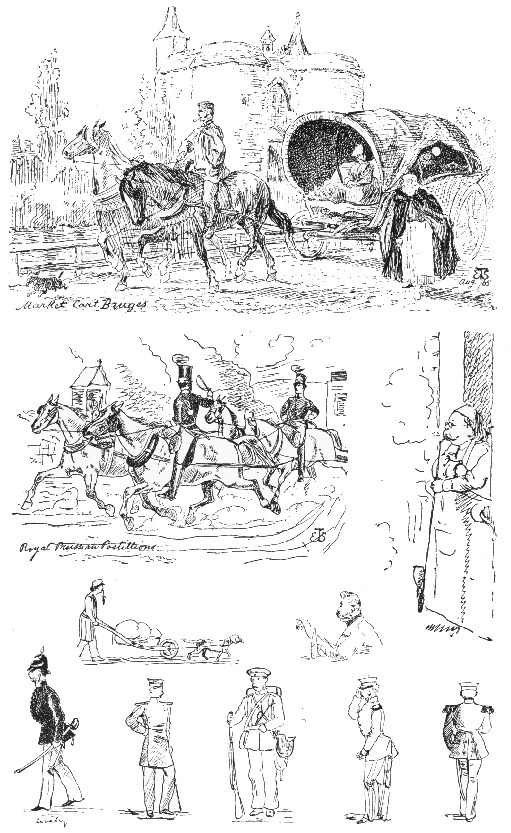 The Ventnor dances were thoroughly enjoyable, and the croquet parties and the rides with friends, and all the rest of it. Yes, it was a nice life, but the morning lessons never broke off. No doubt we were precocious, but we like to dwell on the fact of the shortness of our childhood and the consequent length of our youth. I now and then come upon funny juvenile sketch books where I find my Ventnor partners at these dances clashing with charges of Garibaldian cavalry. There they are, the desirable ones and the undesirable; the drawling “heavy swell” and the raw stripling; the handsome and the ugly. The girls, too, are there; the flirt and the wallflower. They all went in.