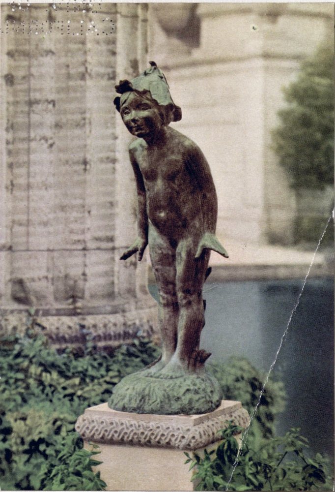 It has a wonderful arched entrance, with statues of mythological meanings, which father explained to us, but we liked best little Pan, who sits at the left of the entrance. He has charmed with his pipes a chameleon, who has come to his feet to listen to the music.