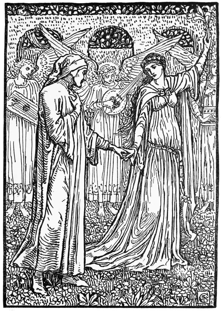 At last they reached the spot called the Terrestrial Paradise, and there, as Virgil had told him, stood his loving Beatrice, who took him by the hand and led him up into Heaven itself, beyond the clouds, beyond the stars, beyond planets and worlds, even to the foot of the throne of God!