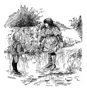 “Oh, only over to the three-mile swamp after white violets. Sarah Rowe, she got her two hands full, and then she just fell splash into the water, full length, and lost ’em—Oh, dear me, how I laughed! She did look so funny.”