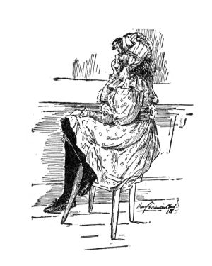 There were several pretty pictures on the walls, but they were all hung crookedly; the curtain at the window was unlooped, and you could write your name anywhere in the dust that covered mantel, stove, and furniture.