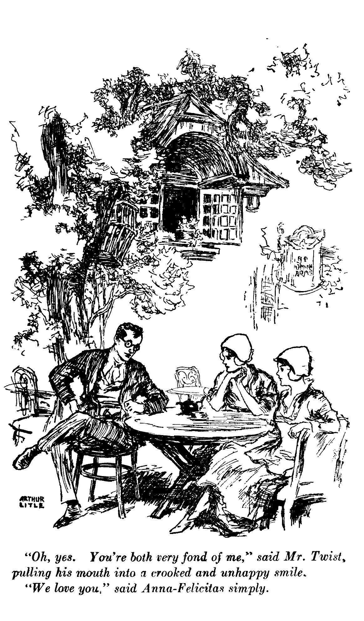 "Now don't—now please—yes, yes, I know—he's a stranger, and you haven't seen him yet, but everybody was a stranger once," said Mr. Twist, quoting Anna-Felicitas's own argument, the one that had especially irritated him half-an-hour before, "and he's real good—I'm sure of it. And you'll be sure too the minute you see him. That's to say, if you're able to see anything or anybody for the next week out of your unfortunate stuck-together little eyes."