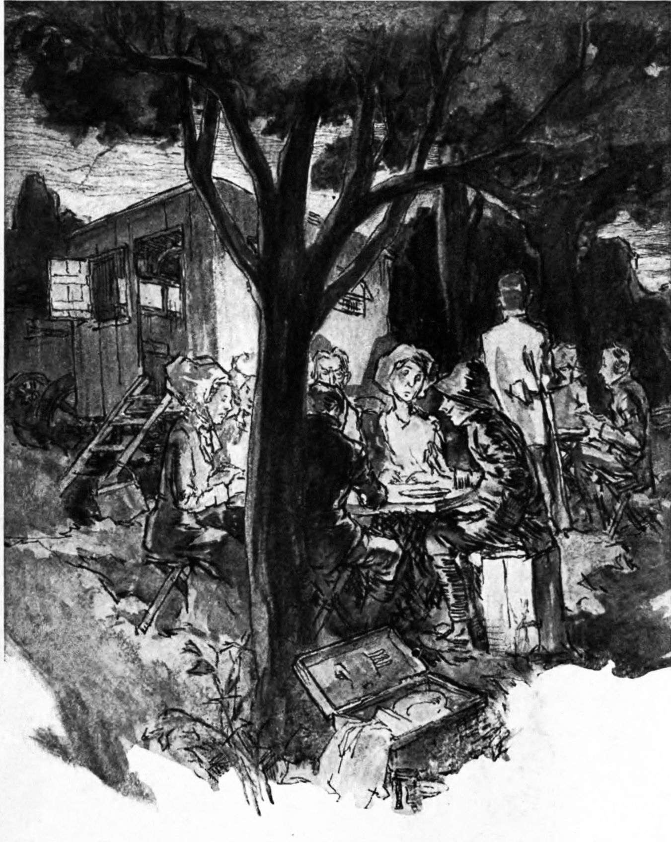 “You wouldn’t see one,” said our hostess. “Only a nice child in a clean apron from a farm bringing eggs and cream. And you move about the whole time, and see the country in a way you never would going from place to place by train.”