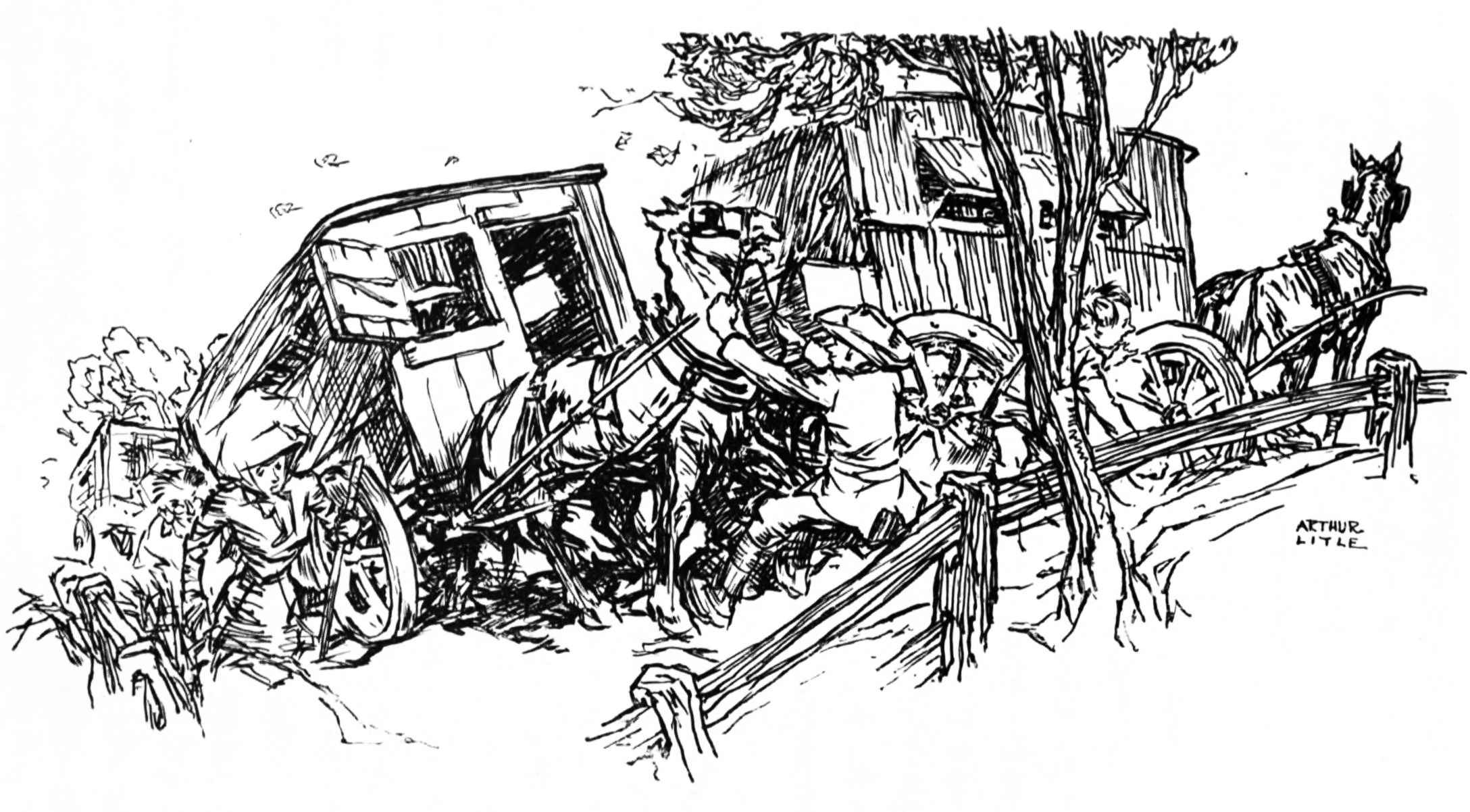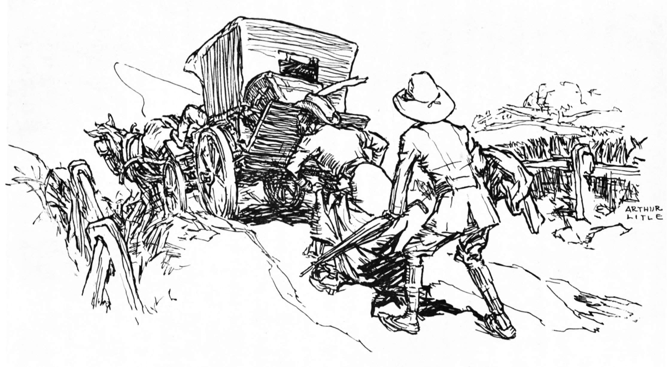 The picture she held out to me was one bearing a strong resemblance to the gipsy carts that are continually (and very rightly) being sent somewhere else by our local police; a little less gaudy perhaps, a little squarer and more solid, but undoubtedly a near relation.