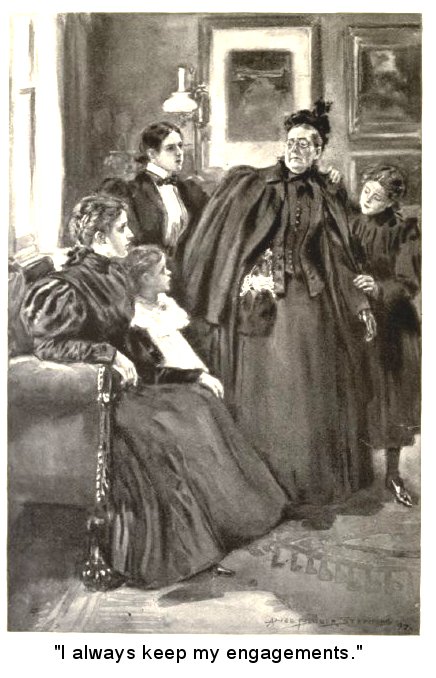 “I always keep my engagements,” replied Mrs. Wentworth Ward. “If women did not keep their engagements, what would become of mankind? Ten days ago I wrote on my memorandum calendar for November third, ‘Glen Arden, 9 A.M. train.’ A woman should be as exact as a railroad time-table, whatever the weather. It is the only way to accomplish anything in this world. The 9 A.M. train has arrived, and so have I.”