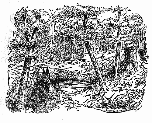 These daughters of the Iroquois are bubbling over with good spirits, and their pottery jugs with water, when all at once they spy a band of hunters coming homeward down the Cayudutta valley from the Sacondaga country. Knowing there is one among them who but waits his chance to lay his wealth of beaver-skins at Tekakwitha's feet and take her for his wife, they turn girl-like to tease her; but the quick and timid orphan, dreading the license of their tongues, has bounded up the hill, and hastens to her uncle's cabin with her jug, leaving her companions to bandy words with the young [Pg 11] hunters as they stop beside the little pool for a draught of refreshing water.