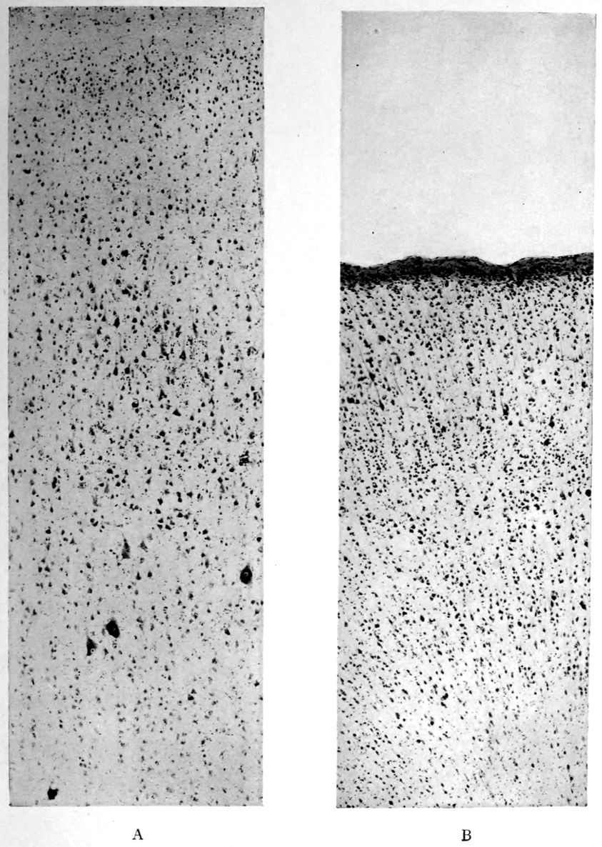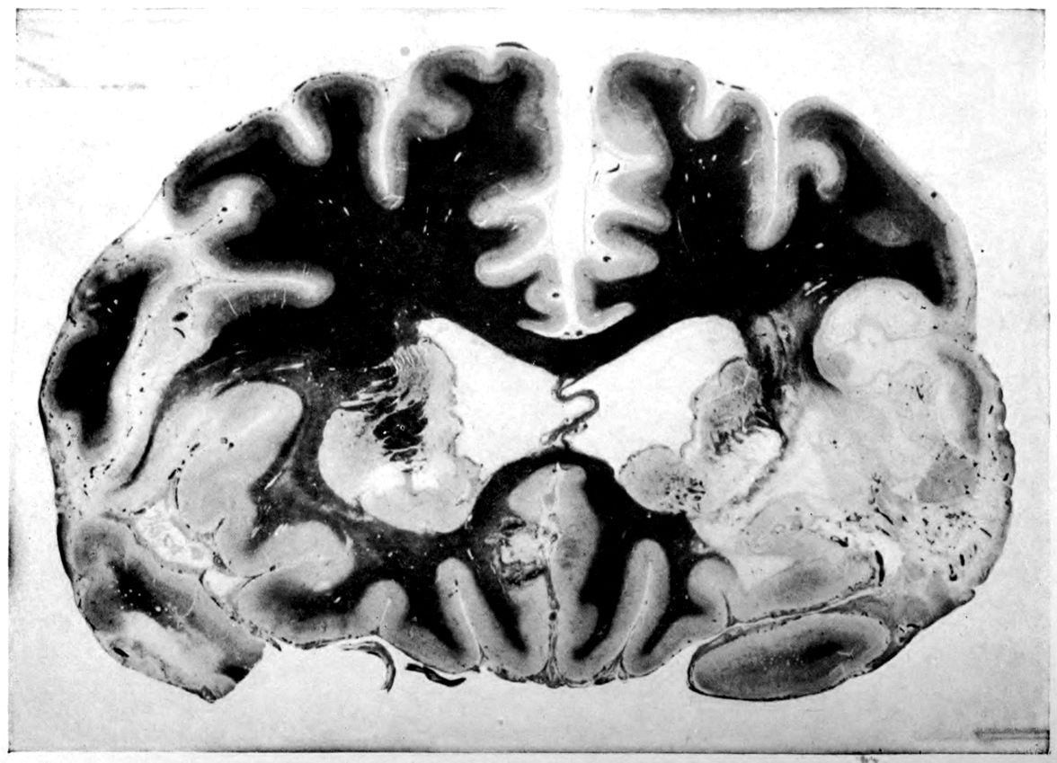 Nor should we have been able to present our samples of brain correlation without drawing on the collection arranged and analyzed by Dr. Annie E. Taft, Custodian, Harvard Department of Neuropathology. The photographs, part of a collection of brain photographs now numbering over 10,000 representing 700 brains of all sorts, were made by Mr. Herbert W. Taylor.