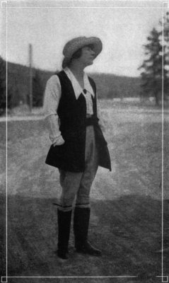 Rowena, the younger, seventeen now,[15] who wears hers with spirals, tells me that Cynthy keeps a diary, because she herself found it in the tool box. “And once,” says Rowena to me, “Cynthy, after coming into camp from a walk through the moonlit pines, wrote in her diary: 'August 12, 11 p. m. Trout for supper. Walked with —— toward the Hymen Terrace, just beyond Jupiter Hill, I think it is called. The moon wonderful what woman is there who has not at some time in her life longed to be swept off her feet by some Strong Man!'”