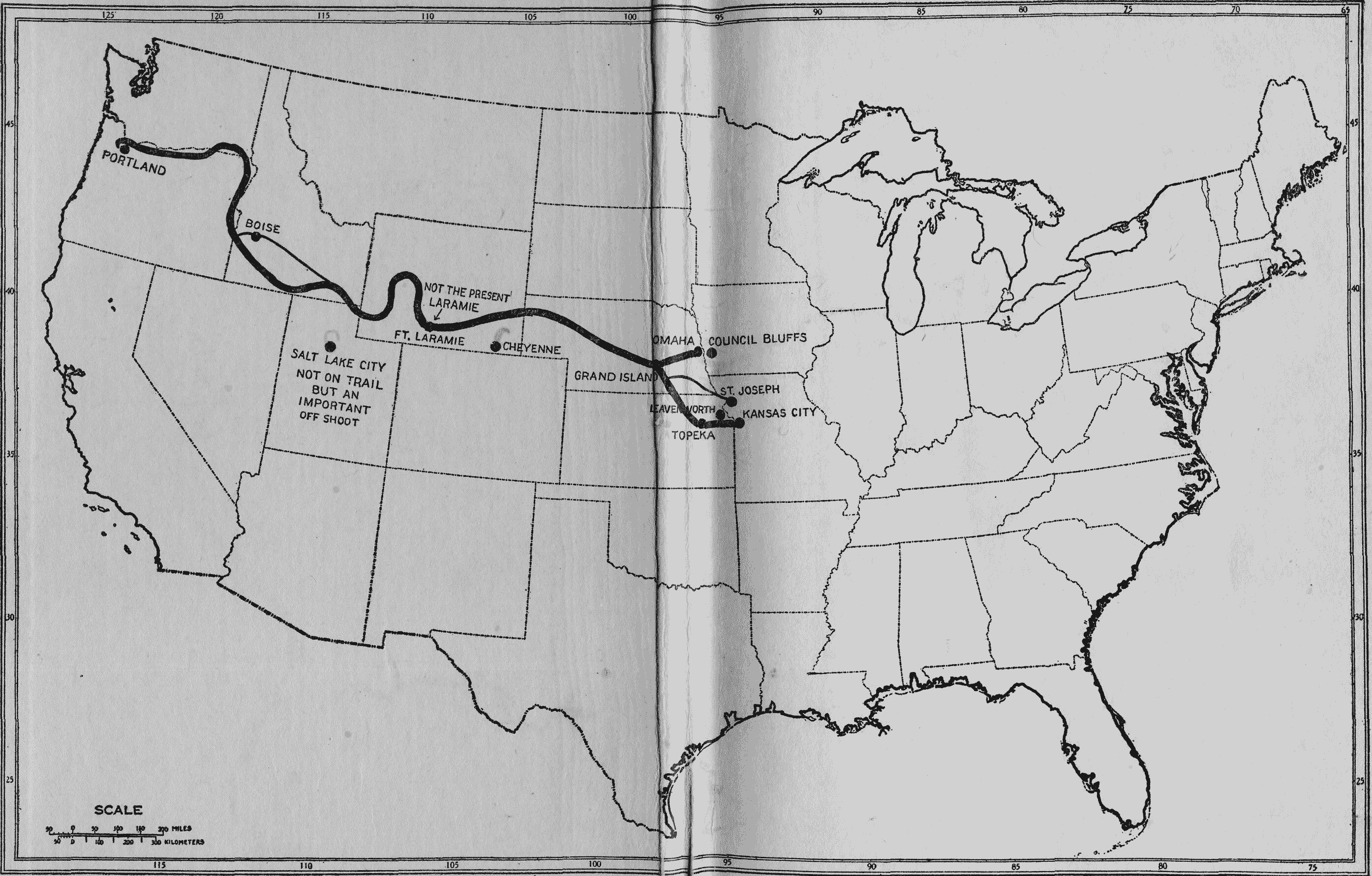 To get the local descriptions, the color, atmosphere, "feel" of a day and a country so long gone by, any writer of to-day must go to writers of another day. The Author would acknowledge free use of the works of Palmer, Bryant, Kelly and others who give us journals of the great transcontinental trail.