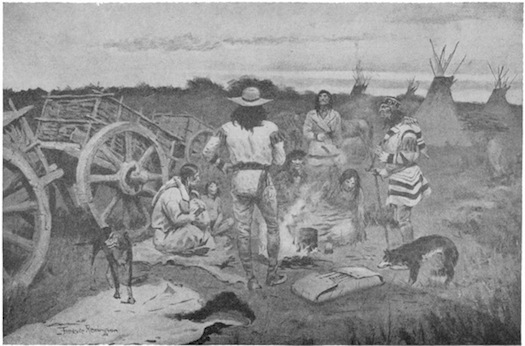 Then, under the white fur traders’ tutelage, there were made great ships of birch-bark, the canot du Nord of the Hudson Bay trade, such as came down 23 with rich burdens of furs when the brigades started down-stream to the markets; or yet the greater canot du maitre once used on the Great Lakes, a craft that needed a dozen to a dozen and a half paddles for its propulsion. Again, at the heads of the far off Northwestern streams there were canoes so small as to carry but a single person, propelled by a pair of sticks, one in each hand of the occupant, the points of these hand-sticks pushing against the bottom of the stream. But ever this ship of the wilderness was so contrived that its crew could drive it by water or carry it by land.