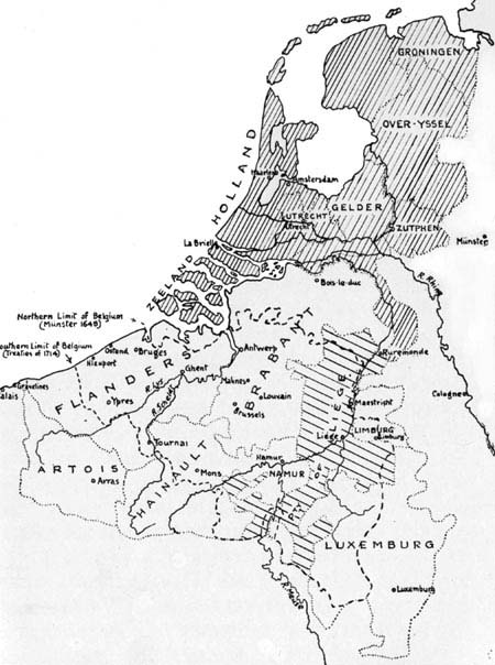 Situation of the Southern Netherlands between the United Provinces and France—Projects of Partition—Münster Treaty—Wars of the Spanish Succession—The Anglo-Batavian Conference—Treaty of Utrecht—The Barrier system. Pg 011