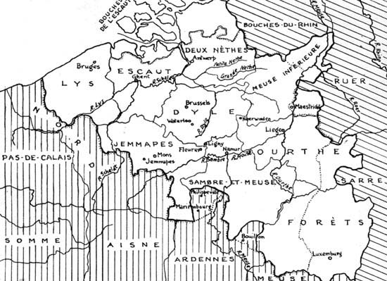 Jemappes—Excesses of the "Sans Culottes"—Neerwinden—Treaty of The Hague—Policy of the Convention towards occupied territory—Annexation—The "War of the Peasants"—Napoleonic rule—The Vienna Treaty.