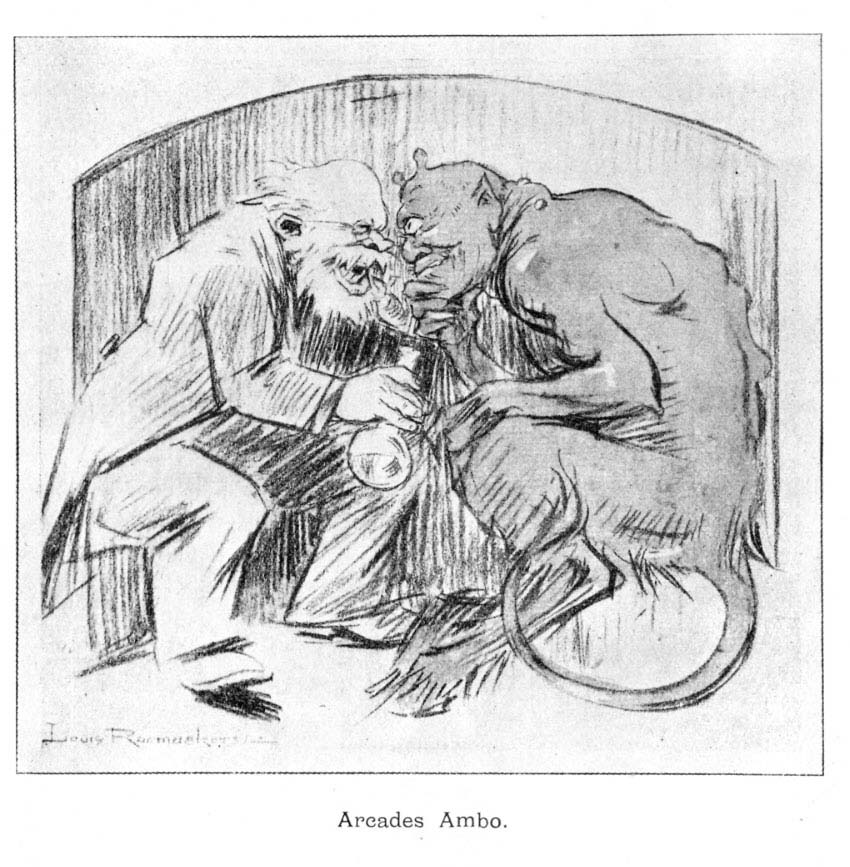 In spite of the most authentic documents, of the most glaring material proofs, it might be difficult to realise that the human spirit may fall so low. It seems as if we were diminishing ourselves when we accuse our enemies. We have lived so long in the faith that "such things are impossible" that, now that they happen almost at our door, we should be inclined to doubt our eyes rather than to doubt the innate goodness of man. Never did I feel this more strongly than when I saw, for the first time, a caricature of King Albert reproduced from a German newspaper.