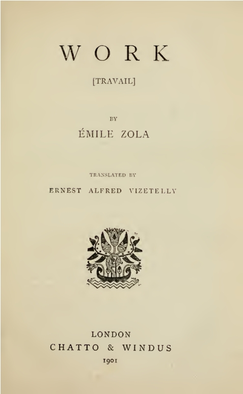 In conclusion, I may point out that the tendency of M. Zola's book in one respect is shown by the title chosen for the present translation. The original is called 'Travail,' which might have been rendered in English as either 'Labour' or 'Work.' We read every day about the 'labour world,' the 'conditions of labour,' the 'labour party,' and so forth, and as these matters are largely dealt with by M. Zola, some may think that 'Labour' would have been the better title for the English version of his book. But then it is M. Zola's desire that man should labour no more; he does not wish him to groan beneath excessive toil—he simply desires that he should work, in health and in gaiety, with the help of science to lighten his task, and a just apportionment of wealth and happiness to gild his days until he takes his rest.