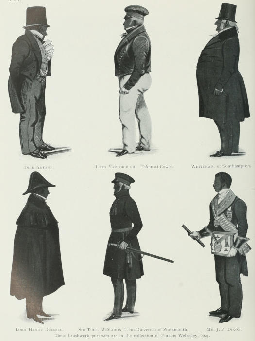 Later the craft of the silhouettist fell into disrepute when it had become part of the curriculum of young ladies’ schools; unskilful artists itinerated, pursuing their craft in booths and at fairs—one in the Thames Tunnel, several on the Chain Pier at Brighton. At street corners magic figures, with concealed workers, were used to entice the unwilling with mystery. Even Sam Weller, in his inimitable letter to Mary, laughs at the methods of the “profeel macheen.”