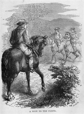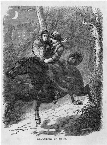 So to prevent this she threw a cloak over her head, and followed the maid, without speaking, to where a muffled figure stood outside the door. She had only stepped off the threshold, when a gust of wind blew the door close, and at the same moment her wrist was seized, and she was dragged away from the house; and before she could even scream, or give any alarm, she was lifted on to a horse, and the man sprang up before her, and galloped away into the village.
