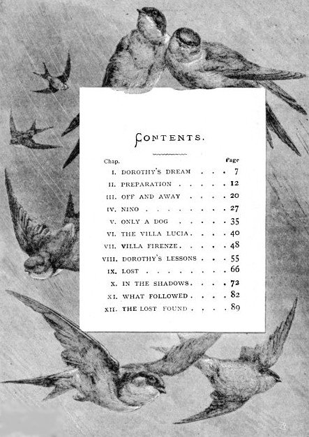 Meantime little Dorothy, who had been lying curled up as I have described, had heard in a confused way much of what Dr. Bell said. "A flight with the swallows." The swallows, her uncle, Canon Percival, had told her, flew away to sunshine and flowers; that the cold wind in England gave them the ague, and that they got all sorts of complaints, and would die of hunger, or cramp, or rheumatism if they stayed in England!