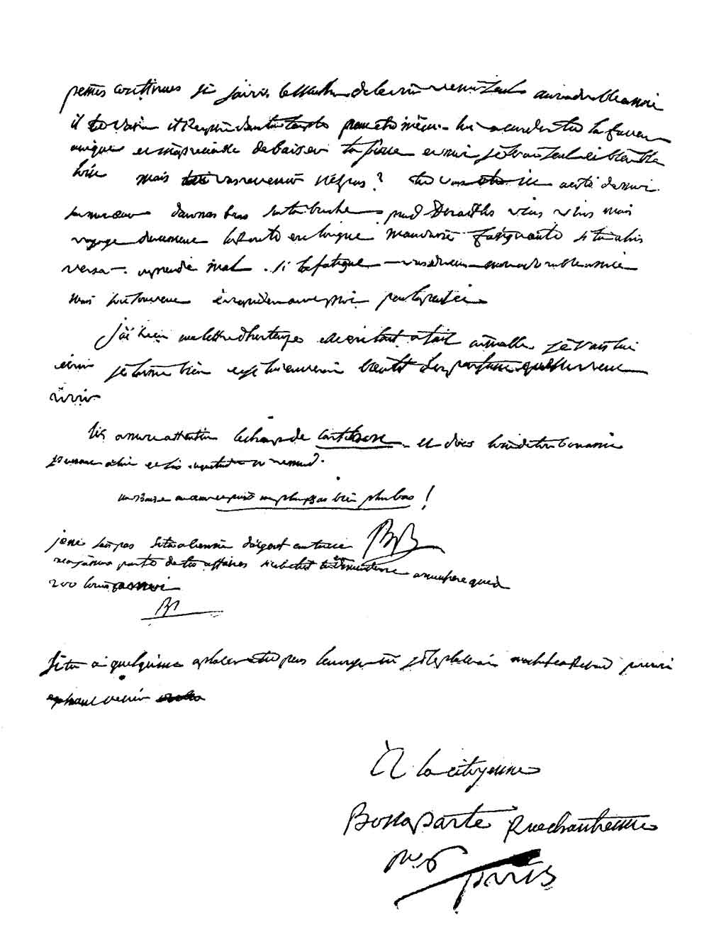 This book and these letters were known to Sir Walter Scott, who made use of some of them in his History of Napoleon. M. Aubenas, in his Histoire de l'Impératrice Joséphine, published in 1857, which has been lavishly made use of in a recent work on the same subject, seems to have known, at any rate, four of these letters, which were communicated to him by M. le Baron Feuillet de Conches. Monsieur Aubenas seems never to have seen the Tennant Collection, of which these undoubtedly form part, but as Baron Feuillet de Conches was an expert in deciphering Bonaparte's extraordinary caligraphy, these letters are very useful for reference in helping us to translate some phrases which had been given up as illegible by Mr. Tennant and Sir Walter Scott.