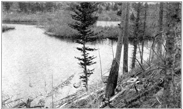Before the white man came, beaver—Castor canadensis—were widely distributed over North America, perhaps more widely than any other animal. The beaver population was large, and probably was densest to the southwest of Hudson Bay and around the headwaters of the Missouri and Columbia rivers. Their scantiest population areas in the United States appear to have been southern Florida and the lower Mississippi Valley. This scantiness is attributed by early explorers to the aggressiveness of the alligators. All the southern half of Mexico appears to have been without a beaver population; but elsewhere over North America, wherever there were decid[Pg 42]uous trees and water, and in a few treeless places where there were only water and grass, the beaver were found. Along the thousands of smaller streams throughout North America there was colony after colony, dam after dam, in close succession, as many as three hundred beaver ponds to the mile. Lewis and Clark mention the fact that near the Three Forks, Montana, the streams stretched away in a succession of beaver ponds as far as the eye could reach. The statements made by the early explorers, settlers, and trappers, together with my own observations,—which commenced in 1885, and which have extended pretty well over the country from northern Mexico into Alaska,—lead to the conclusion that the beaver population of North America at the beginning of the seventeenth century was upwards of one hundred million. The area occupied was approximately six million square miles, and probably two hundred beaver population per square mile would be a conservative number for the general average.