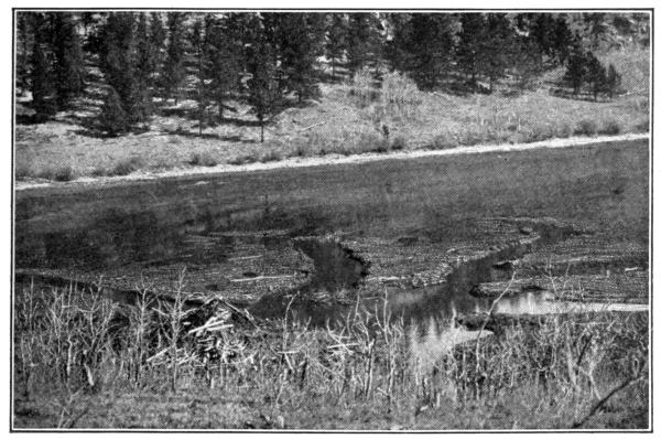 Pounds considered, the beaver is a powerful animal, and over a rough trail will drag objects of twice his own weight or roll a log-section of gigantic size. Up a strong current he will tow an eighty- or one-hundred-pound sapling without apparent effort. Three or four have rolled a one-hundred-and-twenty-pound boulder into place in the dam. Commonly he does things at opportune times and in the easiest way. His energy is not wasted in building a dam where one is not needed nor in constructive work in times of high water. He accepts deep water as a matter of fact and constructs dams to make shallow places deep.