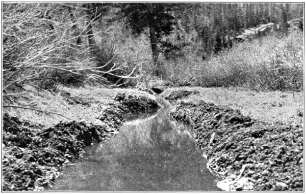The beaver is a valuable conservationist, but there are localities in which he cannot be tolerated. Although dead wood is rarely cut by the beaver, many a homesteader has been disturbed by his cutting off and carrying away green fence posts. Recently beaver have returned to a few localities and got themselves into bad repute by felling fruit trees. Occasionally, too, in the West,[Pg 31] they have lost caste by persistently damming an irrigation-ditch and diverting the water, despite the fact that a court has given both the title and the right to this water to some one else a mile or so down the ditch.