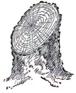 A century of tranquil life followed, and during these years the rapid growth tells of good seasons as well as[Pg 18] good soil. This rapid growth also shows that there could not have been any crowding neighbors to share the sun and the soil. The tree had grown evenly in all quarters, and the pith of the tree was in the center. But had one tree grown close, on that quarter the old pine would have grown slower than on the others and have been thinner, and the pith would thus have been away from the tree’s center.