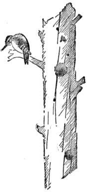 Fortunately relief came. One day the chief surgeon of all the Southwestern pineries came along. This surgeon was the Texas woodpecker. He probably did not long explore the ridges and little furrows of the bark before he discovered the wound or heard these hidden insects working. After a brief examination, holding his ear to the bark for a moment to get the location of the tree’s deadly foe beneath, he was ready to act. He made two successful operations. Not only did these require him to cut deeply into the old pine and take out the borers, but he may also have had to come back from time to time to dress the wounds by devouring the ant-colonies which may have persisted in taking possession of them. The wounds finally healed, and[Pg 21] only the splitting of the affected parts revealed these records, all filled with pitch and preserved for nearly nine hundred years.