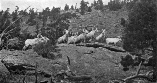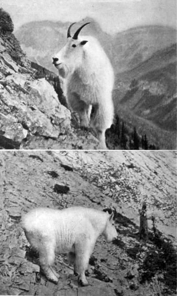 Bighorn sheep also live above the timberline. In some localities they and the goat are found together. But sheep make occasional lowland excursions, while goats stay close to the skyline crags and the eternal snows, descending less frequently below the timberline except in crossing to an adjoining ridge or peak. Among the other mountain-top neighbours of the goat are ground squirrels, conies, weasels, foxes, grizzly bears, lions, ptarmigan, finches, and eagles; but not all of these would be found together, except in a few localities.