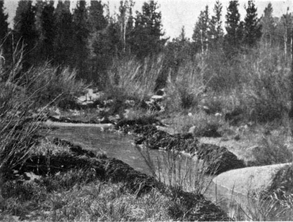 Stories of this large, handsome, nearly white Echo Mountain grizzly reached trappers more than one hundred miles away. During the several years through which I kept track of her a number of trappers tried for the bear, each with his own peculiar devices. They quickly gave it up, for in each case the bear early discovered the trap—came close to it and then avoided it.