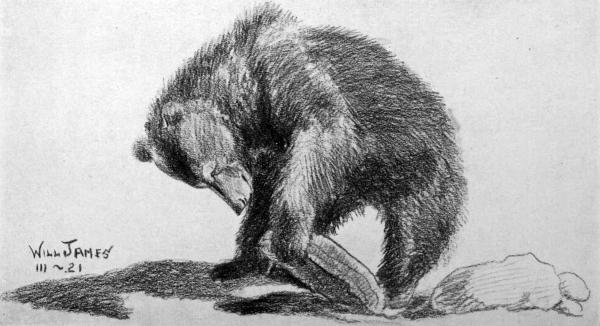 Grizzlies often explore afar and become acquainted with the unclaimed territory round them, and it is possible that this mother grizzly knew the character of the new home territory before emigrating. There was an abundance of food in the old home territory, but it is possible that she had lost former cubs there and it is certain that she had been shot at a number of times. However, the change may have been simply due to that wanderlust which sometimes takes possession of the ever-adventurous grizzly. In the eventful years which followed she showed tireless energy and skill. Though badly crippled, she still maintained those qualities which[Pg 234] mean success for the survival of the species—the ability to make a living, the postponing of death, and the production of offspring.