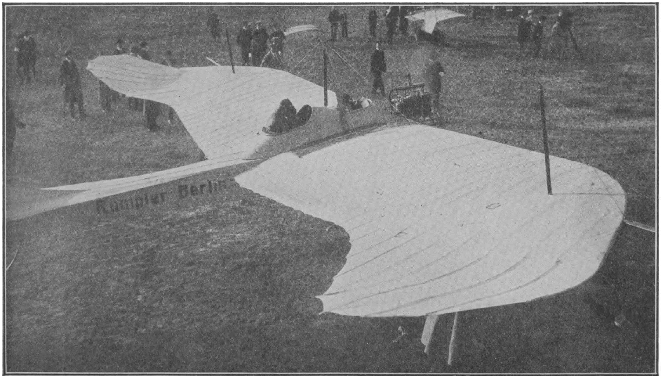 It is undoubtedly a disadvantage of the aëroplane that it has to run on the ground on wheels to get the initial velocity necessary for flight.171 In some of the earlier military experiments with aëroplanes the machines were made to run over ploughed fields, for it was recognised that machines which could only rise when running on smooth ground would be useless for military work. But one can imagine that it may often be expedient in military operations for machines to rise from land so unequal that with the present method flight would be impossible.