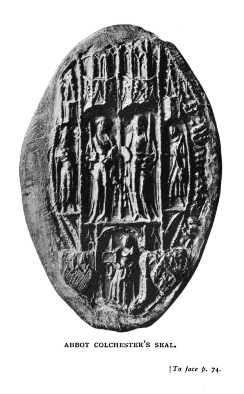 But his name was William Colchester, and we may begin by assuming that, as his name implies, he was a Colchester man. In and before his time, and for a considerable space afterwards, the customary designation of a Brother was his Christian name and a place name, with or without the copula de; in earlier years he called himself William de Colchester, but the documents which concern him as Abbot mostly speak of William Colchester, or William Abbot of Westminster. Nor are we left to guess-work as to the place of his origin. In later life, according to the habit of his time, he busied himself with the endowment of obits, or anniversaries, for the good of his soul. Here is a document, 4 dated May 20, 1406, in which he bargained with the Prior of St. Botolph, Colchester, having paid 40s. to Henry IV.'s Clerk of the Hanaper to seal the bargain, that one of the canon-chaplains of that Priory should say Mass every week, at sixpence a week, for his soul and for the souls of his parents; that the Prior and his Brethren should observe his anniversary, again with a memorial of his parents, in the parish church of St. Nicholas, Colchester; that a set [16] sum should be distributed yearly to the vicar of St. Nicholas, to the poor of the parish, and to the prisoners in Colchester Castle; and that the tomb of his parents in the parish churchyard should be kept in proper repair.